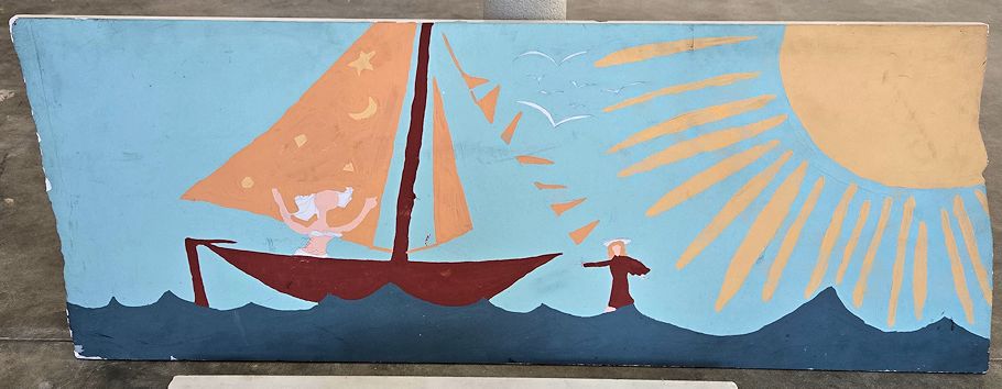 It turns out the ball-point pen drawing I (very likely) did 18 December 1983 is the precursor to the image of Anonymous Saint in Bikini while Jesus is Walking on Water. This data is somewhat useful to Playing the Pre-Shrine Curator because ASIBWJIWOW is not dated or signed. There is recent speculation that ASIBWJIWOW is the first artwork by Stephen Lauf after his completion of the first Self Portrait. I kind of remember wanting to do something completely "other" after the Self Portrait, and painting like a child on a heavy, flat piece of marble seemed to at least fulfill that intention.