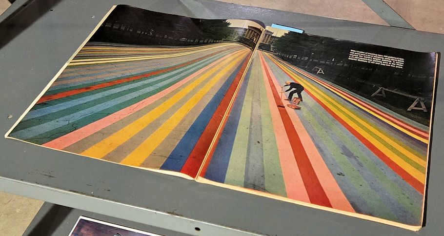 The world's largest painting by Gene Davis on the parking lot in front of the Philadelphia Museum of Art--31464 square feet, 12 miles of masking tape used, 400 gallons of special paint. As predicted, it lasted about 5 years.