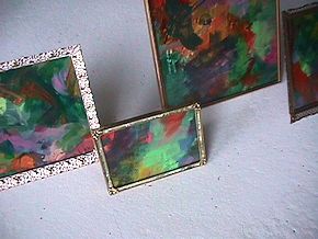 This is the 'big glass,'" he said, pointing to a large shattered pane of glass decorated with oil paint and lead wire in abstract patterns, which was mounted on a stand in front of the window looking out on the courtyard. "Duchamp called it The Bride Stripped Bare By Her Bachelors, Even." He laughed and went on in a loud voice to make several vulgar remarks.