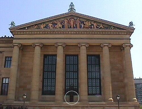 Directly below the North Wing Pediment of the Philadelphia Museum of Art is a small glassed opening that connects to a gallery within the museum. This aperture was not part of the building as originally executed. Rather its creation occurred in 1954, and is the manifestation of a Marcel Duchamp intention, for immediately behind the opening is The Bride Stripped Bare by Her Bachelors, Even, which stands as the centerpiece of the Philadelphia Museum's Duchamp gallery.