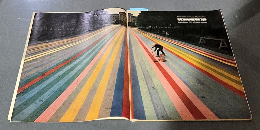 My first visit to the Philadelphia Museum of Art (in 1972 when I was a sophomore in high school) was spurred on by Life magazine's feature of the world's largest painting by Gene Davis. It was on that first visit that I at least remember seeing The Large Glass for the first time, but with no prior knowledge of it or Duchamp--perhaps in retrospect experiencing a kind of loss of virginity in the process, yet also oddly not knowing then who was ultimately "f-ing" with me. I wasn't crazy about what I saw, but the full title of the piece did indeed "tickle" me. Beyond that, I can now only guess that I probably didn't see into Étant Donnés that first visit, thus I probably saw the door, but didn't know to look inside.