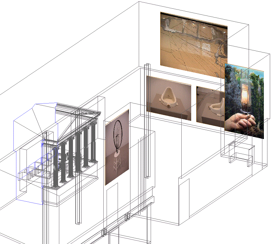 451 Rhawn Gallery . . . a 15% life-size model of the Duchamp Gallery enclosed by the Philadelphia Museum of Art has been installed within the gallery, and has anyone else noticed the Implicit Mugshots?