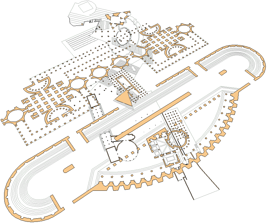 The other "lively" issue with CAD drawings is that they are never completely done, and never is there a sole original either. CAD drawings propagate! For example, in constructing the first Santa Croce in Gerusalemme I needed classical columns, so I effortlessly copied the columns from Quondam's (Schinkel's) Altes Museum model, reduced them in scale, and they look perfect. (not bad for less than ten minutes worth of work)