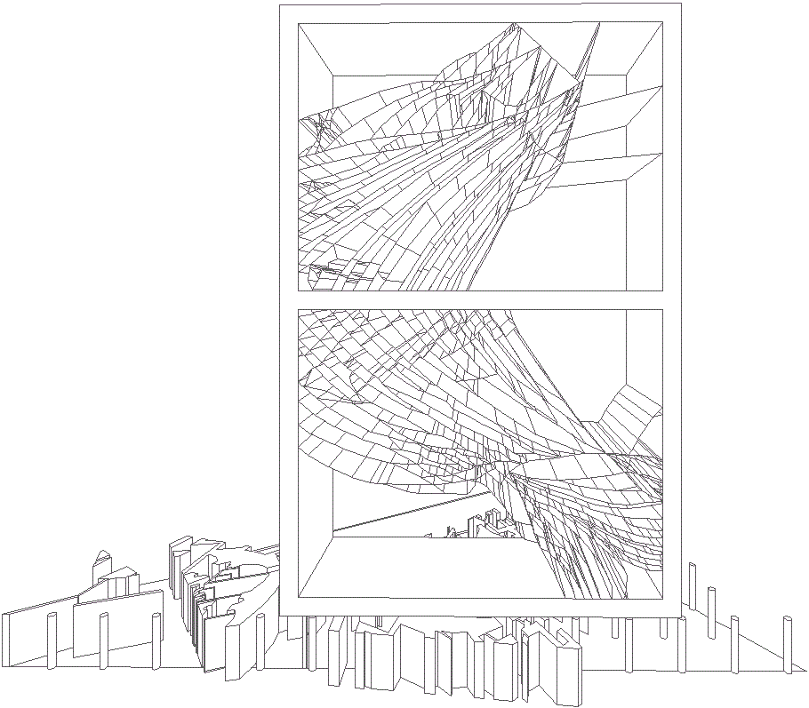 This is the 'big glass,'" he said, pointing to a large shattered pane of glass decorated with oil paint and lead wire in abstract patterns, which was mounted on a stand in front of the window looking out on the courtyard. "Duchamp called it The Bride Stripped Bare By Her Bachelors, Even." He laughed and went on in a loud voice to make several vulgar remarks.