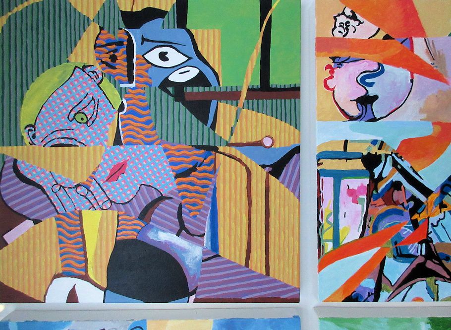 ..."So, could it be said that sentimentality (the derided type) would be an aspiration to or representation of another time, agenda, lifestyle, etc.?" the answer seems to be that sentimentality is never necessarily the type of aspiration you describe, however, a sentimental reenactment is very likely an "aspiration to or representation of another time, agenda, lifestyle, etc." And here the "game" of degrees of separation becomes compounded. While pondering all this I took it to an extreme and came up with the idea of "The Stretch-Mark Paintings" where it is very probably just as possible to get at the truth by really working at stretching it, which demonstrates that opposite extremes lead to different but equally effect outcomes.