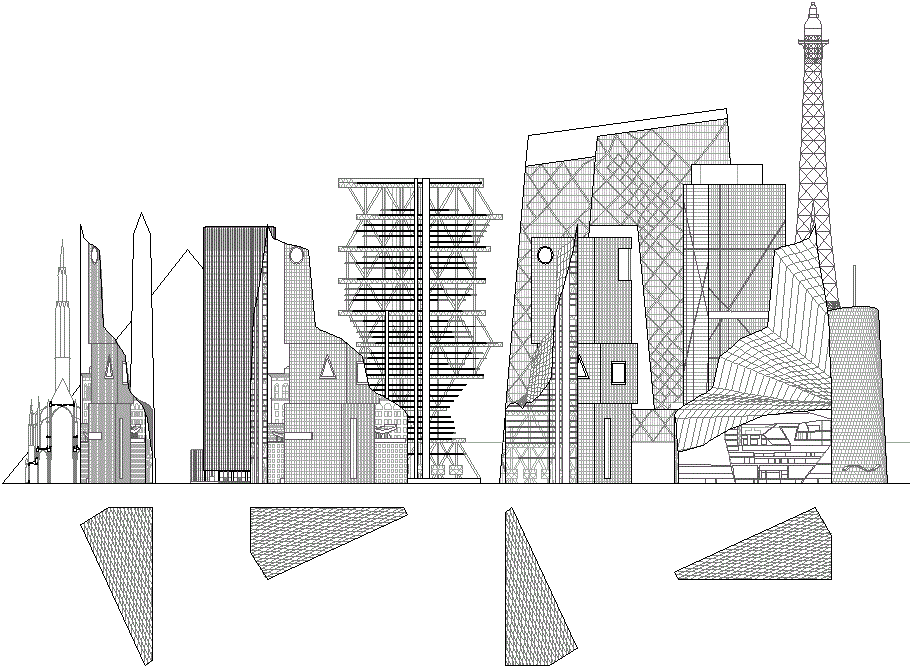 19122001.db Surface Building 1 group elevations Pyramids of Gizeh Beauvais Cathedral Seagram Building City Tower CCTV Eiffel Tower Capital Park West