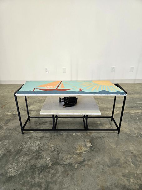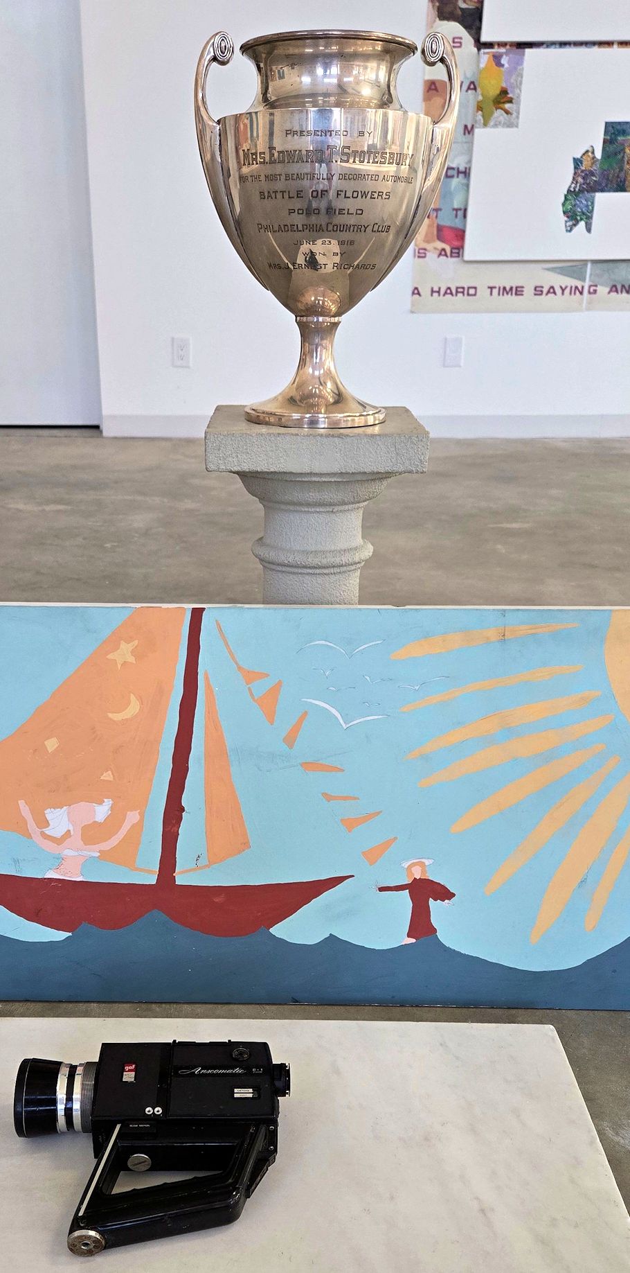 The marble slabs of Anonymous Saint in Bikini While Jesus is Walking on Water and the ubiquitous concrete baluster are personal trophies of teenage vandalism conducted twice at Whitemarsh Hall in 1972.