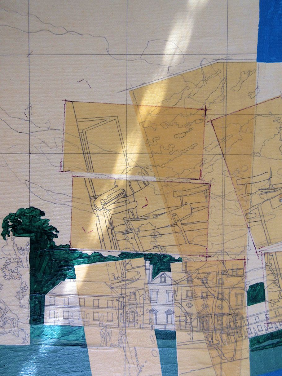 As far as my design is concerned, it was the centerpiece sculpture that the landscape students most liked, i.e., a rectangular platform the size of the largest public elevator within the World Trade Center towers, and on this platform were as many life-size nude sculptures as it would take to fill it, like a crowded elevator, and trailing from this platform was a line of single nude sculptures meandering through the site and on into the Hudson River beyond.