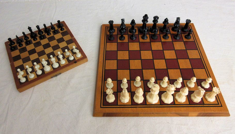Otto George Lauf's Chess Sets The larger set from the early to mid 1960s, and the portable set from 1972.
