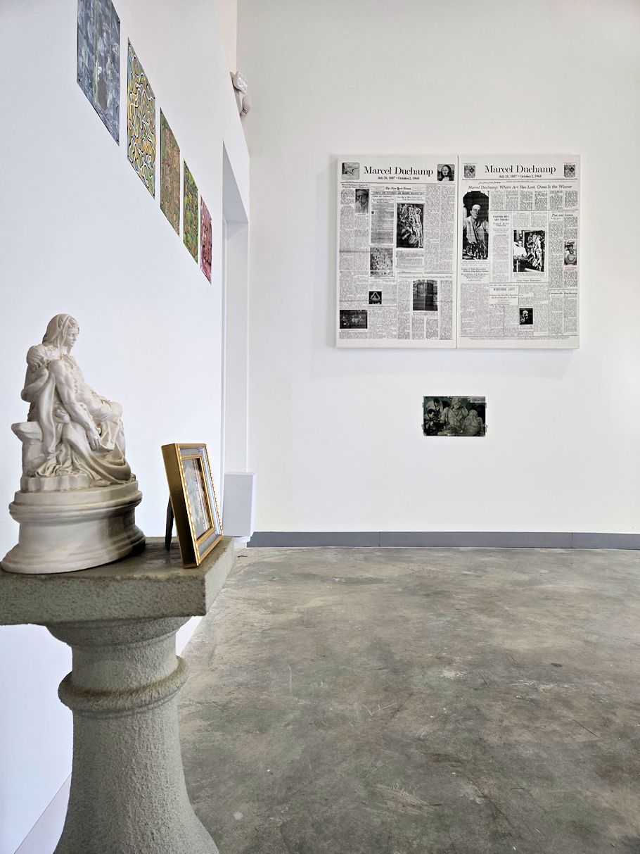 Shortly before noon, and upon finishing "1912: Around the World of Painting in Eight Months", the second chapter of Lebel's Marcel Duchamp, it occurred to me to see if the pages of the originally titled flowers stamped (c. 2005-) are the same size as Hamilton's The Bride Stripped Bare By Her Bachelors, Even (1960)--they're virtually identical, but for the differential of mere millimeters in either direction. And, later today, I'll begin to investigate whether it's a good idea to complete This One's for George (November 2023-) with images of bullous pemphigoid 'attacking' his body (the last year-and-a-half of his life), or the last two images of George, 15 minutes after his death.