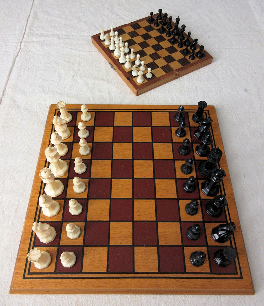 Otto George Lauf's Chess Sets The larger set from the early to mid 1960s, and the portable set from 1972.