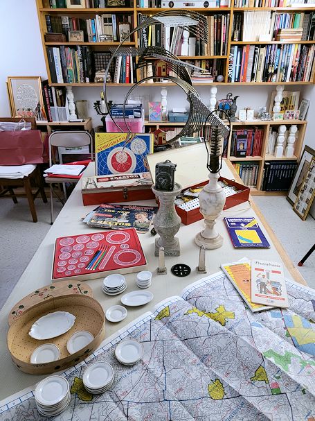 . . . a set of Duchamp packages . . . some kind of artwork with the cracks, and some kind of oddball object(s) maybe...