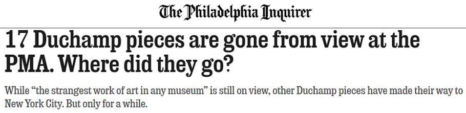 The installation spotlights Duchamp’s relationship with the PMA, which was like no other. The museum was a particularly fruitful meeting of artist, curator, and collector; and that relationship paid dividends. Many of the works in the current temporary show, "Marcel Duchamp, Curator," were originally acquired by major collectors Louise and Walter Arensberg with help from Duchamp."