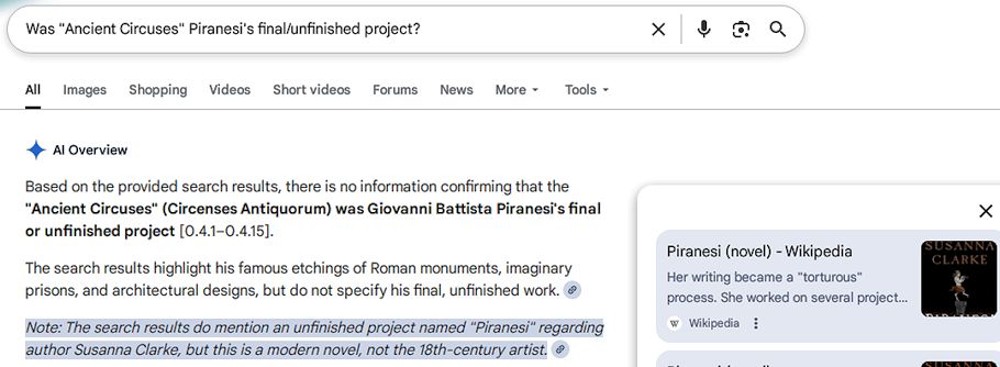 Question to google/AI: Was "Ancient Circuses" Piranesi's final/unfinished project?