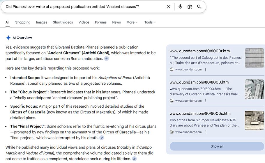 Question to google/AI: Did Piranesi ever write of a proposed publication entitled 'Ancient circuses'?