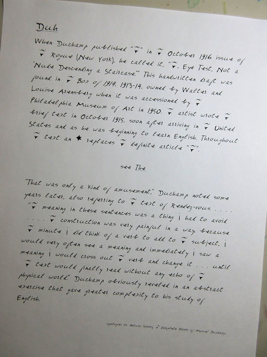 Expressing his satisfaction with the installation plan which he has seen [18.2.1952] for their collection at Philadelphia, Duchamp also broaches the question of Sweeney's project to Walter and Louise Arensberg. "The idea is to show in Europe the important landmarks of the last 50 years which have not been seen there for a long time," he explains. "Sweeney wants to know whether you can make an exception to your no lending decision [27.12.1950] in this case of exceptional importance... I know that without your Matisse, the Chagall, the de Chirico, the Rousseau and two of my own paintings the show would be incomplete."